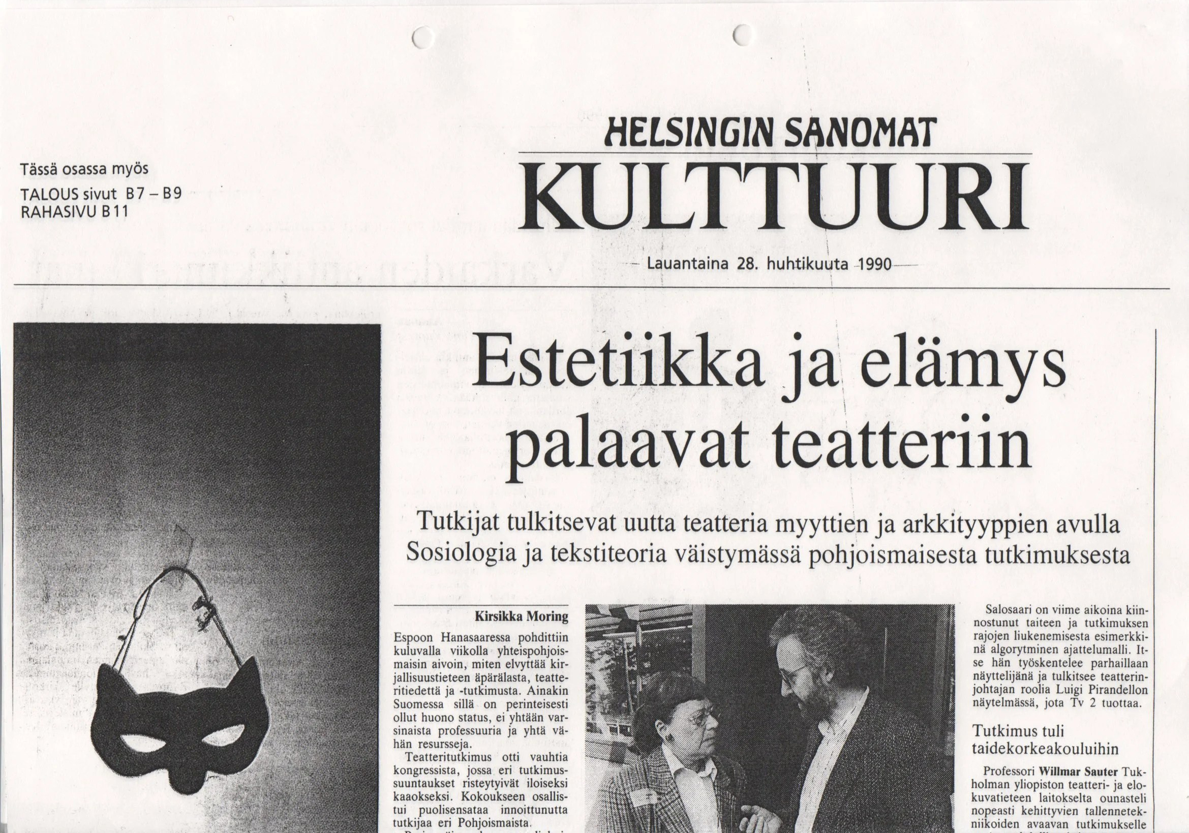 Tapahtuman merkitystä kuvastaa se, että Kirsikka Moringin tapahtumaselostus sai Helsingin Sanomissa kokonaisen sivun. Lehden kuvassa keskustelevat Jytte Wiingaard ja Willmar Sauter. Moringin kirjoitus tuo esiin seikkoja, jotka pelkkää ohjelmamonistetta luettaessa jäävät arvailujen varaan. Varmimmin artikkeli vahvistaa yhteisen kokemuksen siitä, että teatterintutkimus eli muutoksen keskellä tutkijoiden etsiessä käyttökelpoisia menetelmiä hahmottamaan innostavaa kaaosta ympärillään. Sauter oli Moringin mukaan myös todennut, että yliopistojen ja taidekorkeakoulujen tutkimukset olivat Ruotsissa Suomen tapaan eriytymässä ja työnjakoa oli selkiinnytettävä.