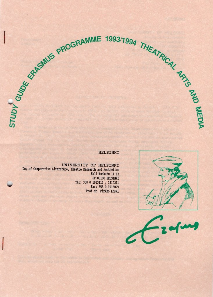 The Erasmus organisation went through changes in the latter part of the 1990s. During the academic year 1997-1998, we moved to Socrates agreements where student and teacher exchanges were now based on bilateral agreements made between universities, and all other activities had to be agreed on separately. This decision led to larger cooperative projects being watered down and a downturn in exchange opportunities for smaller universities, even though our theatre studies department was still managing to tie international contracts and attract students from abroad.