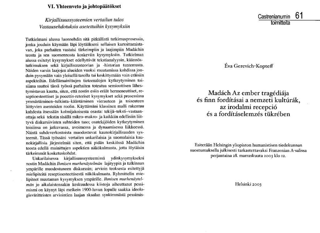 Finnish theatre studies formed formal connections with Hungary from the early 1990s onwards, yet my connections to Hungary were more numerous and older than the ones formed during my university years. My Hungary connections had originally been formed for completely different reasons, yet Hungarian theatre was so fascinating that it drew me in, and eventually, I formed professional theatrical connections too. These ties were built in many ways: working with the Finnish-Hungarian Society, fostering family connections, immersing myself in Hungarian culture, getting to know Hungarian drama and theatre, learning the basics of the Hungarian language, as well as forming professional connections with theatre researchers and archivists.