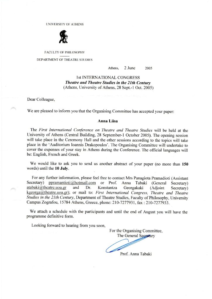 Places that have stood out to me in my own work include the Baltic countries, especially Estonia, and the Nordic countries, notably Sweden. I appreciated these two countries for their community spirit and ability to cooperate. My other contacts were formed as part of my wider networking efforts, particularly within the discipline’s global organisation the International Federation for Theatre Research (IFTR). During the 1989 IFTR conference in Stockholm, a Nordic organisation was formed: Nordiska teaterforskare. After the next IFTR conference, we were invited to join the extensive European Erasmus network. Through Erasmus, our department collaborated with many European universities, especially in Germany, France, United Kingdom, Ireland, and Greece. Thanks to these contacts our students and young researchers also got a taste of internationalisation. IFTR became an umbrella for me and the entire discipline, and alongside representatives of the Baltic, Nordic, and European network, we encountered researchers from other continents, notably American researchers who taught at our departmental summer school.