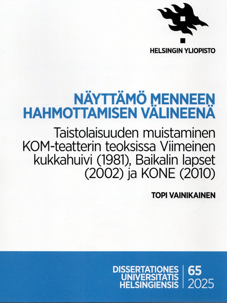 Viimeisin teatteritieteen väitöskirja julkaistiin maaliskuussa, kun Topi Vainikainen puolusti tutkimustaan Näyttämö menneen hahmottamisen välineenä, vastaväittäjänä dosentti Riku Roihankorpi. Teos jatkaa Helsingin yliopiston oppiaineen väitöskirjojen lähes vuosittaista sarjaa ja muistuttaa teatterin merkityksestä yhteiskunnallisen keskustelun aktivoijana.