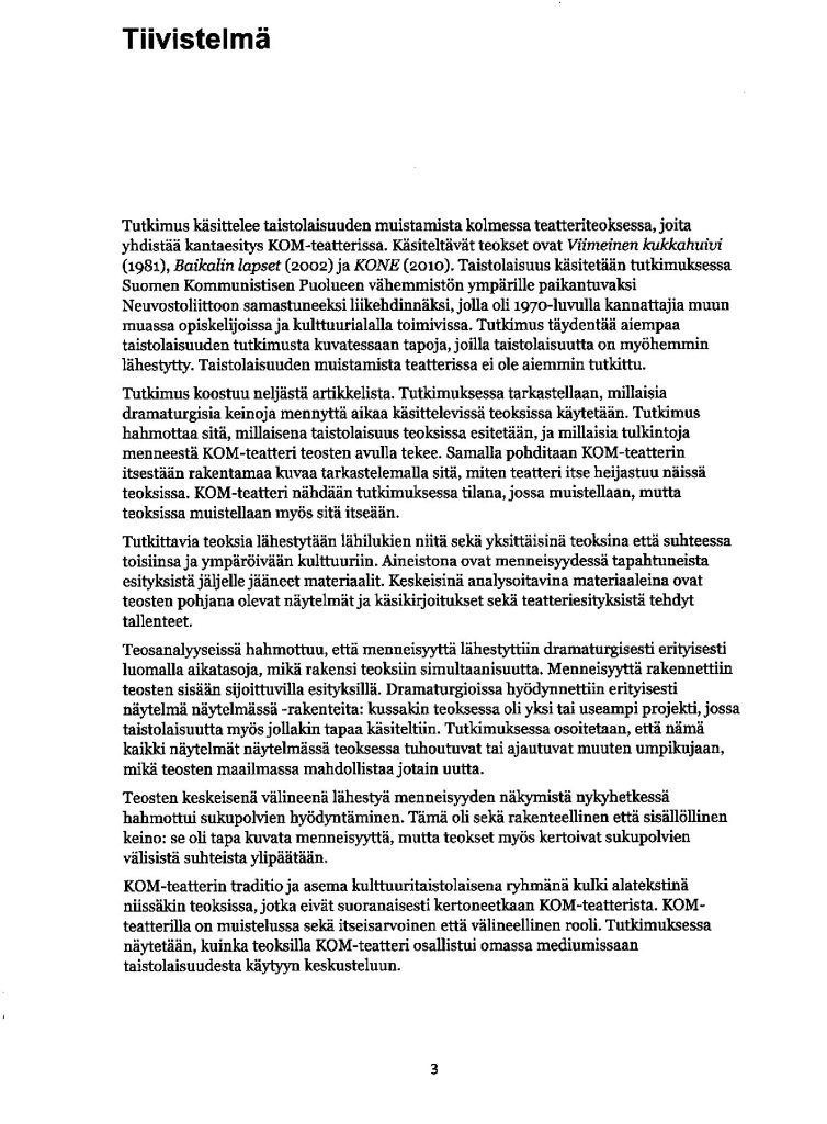 Maaliskuussa ilmestyi uusin teatteritieteen väitöskirja
